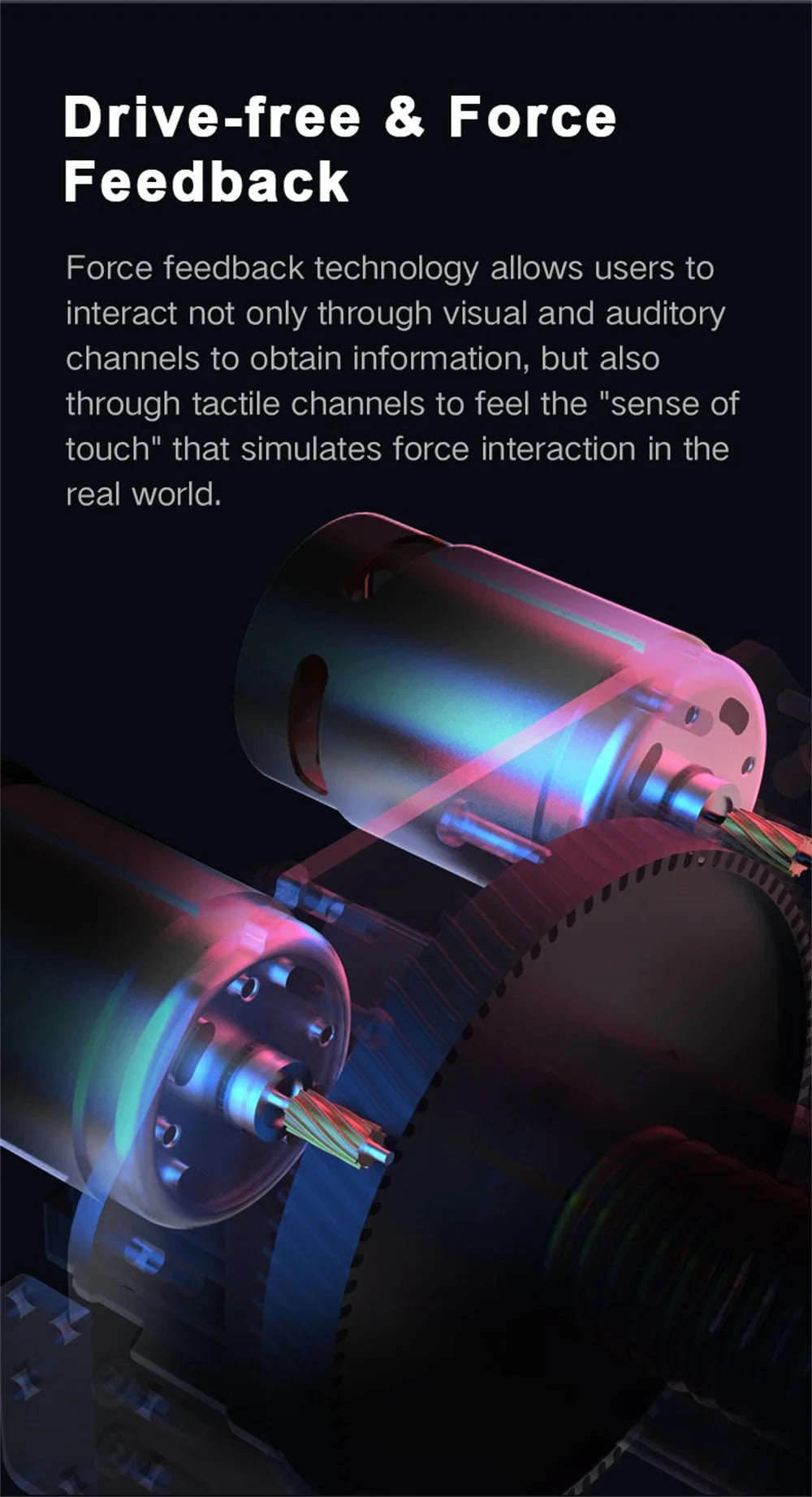 ⚙️ Dual-Motor Force Feedback: Feel the road with powerful, realistic force feedback that simulates car steering, gear shifts, and terrain conditions.