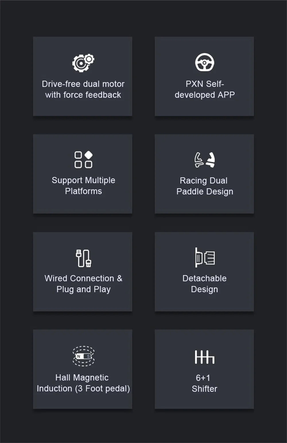 🧠 Smart Configuration via App: Use the PXN Wheel App to switch profiles, adjust settings, or toggle rotation degrees on the fly.