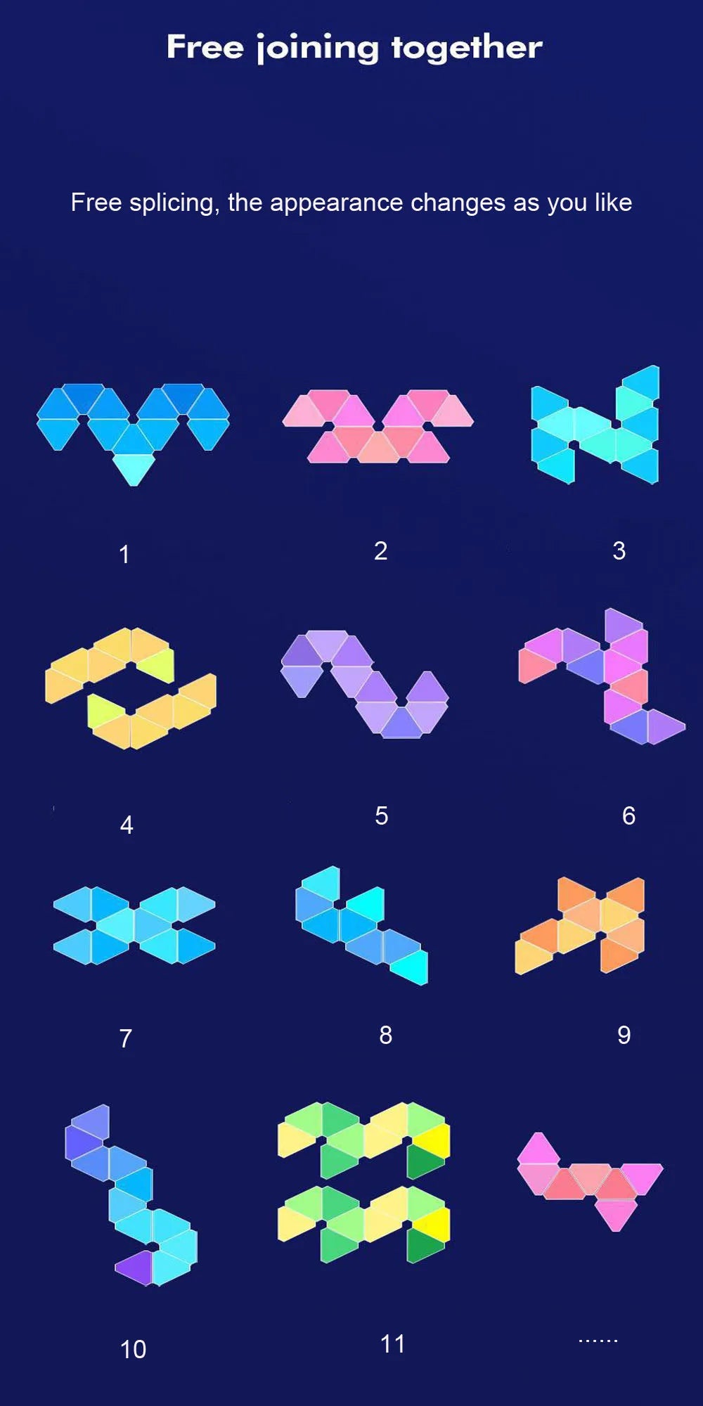 Create immersive ambiance with this modular RGB triangular wall lamp! Perfect for bedrooms, gaming setups, and modern home decor.