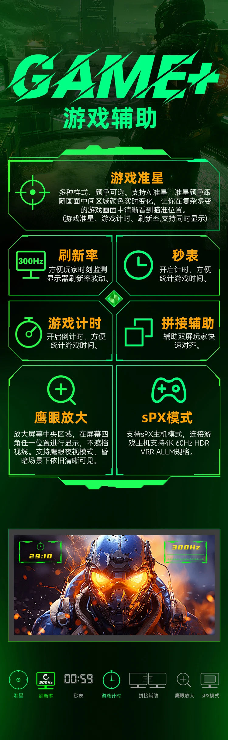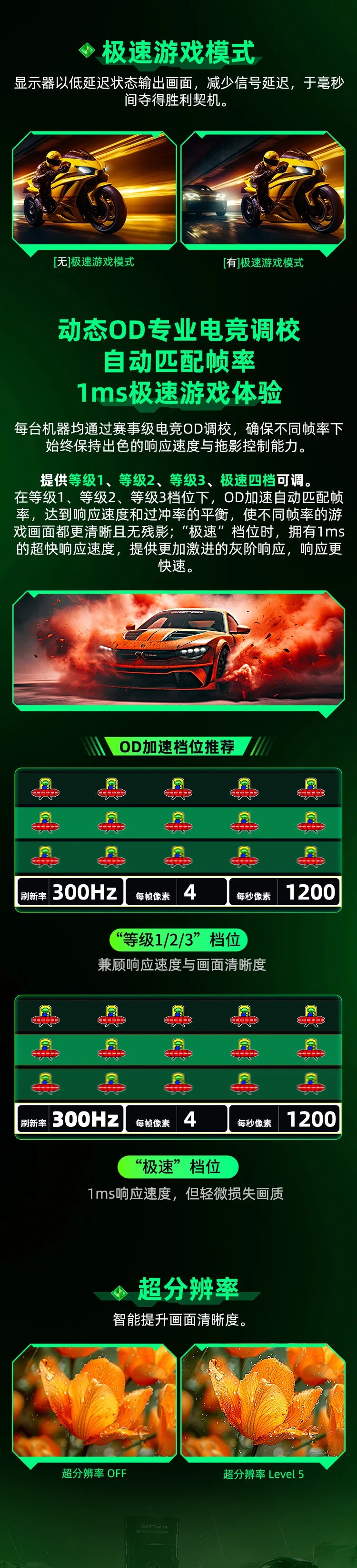 🎯 300Hz refresh + 1ms GTG for ultra-responsive gameplay.