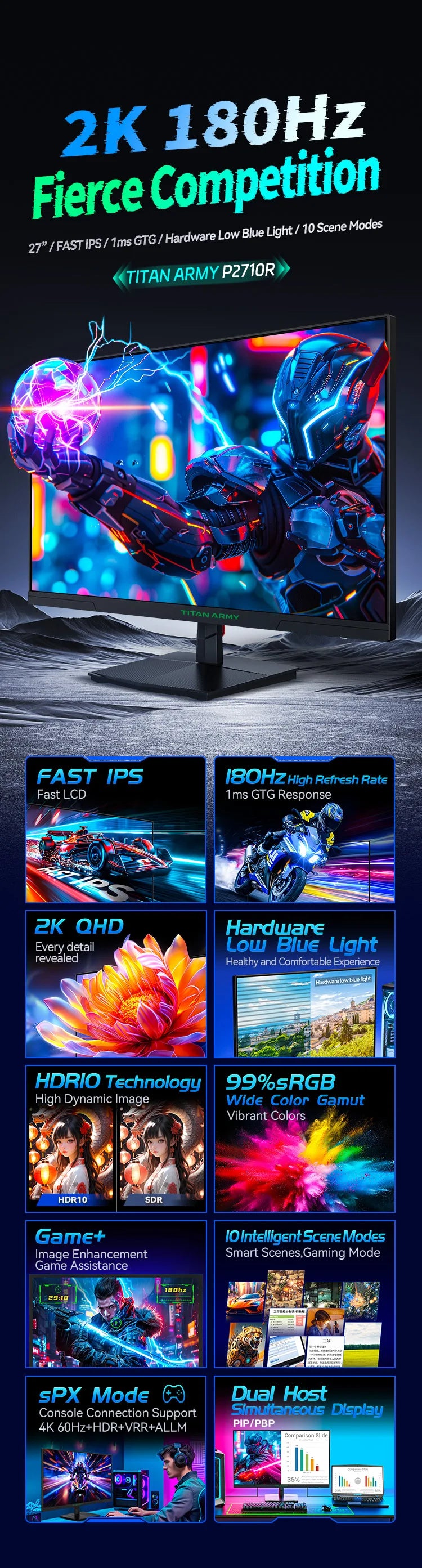 TITAN ARMY 27” 2K Fast IPS 180Hz Gaming Monitor – Smooth. Sharp. Competitive.