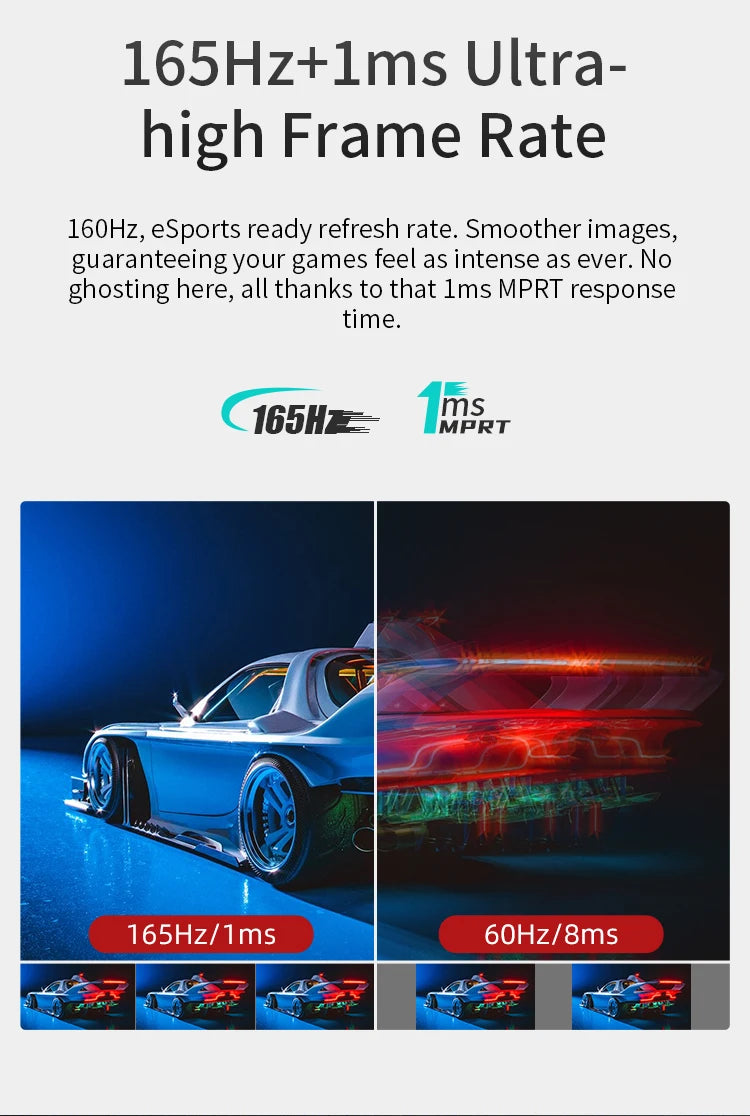 🎮 Smooth 165Hz refresh rate + 1ms response for sharp, lag-free action