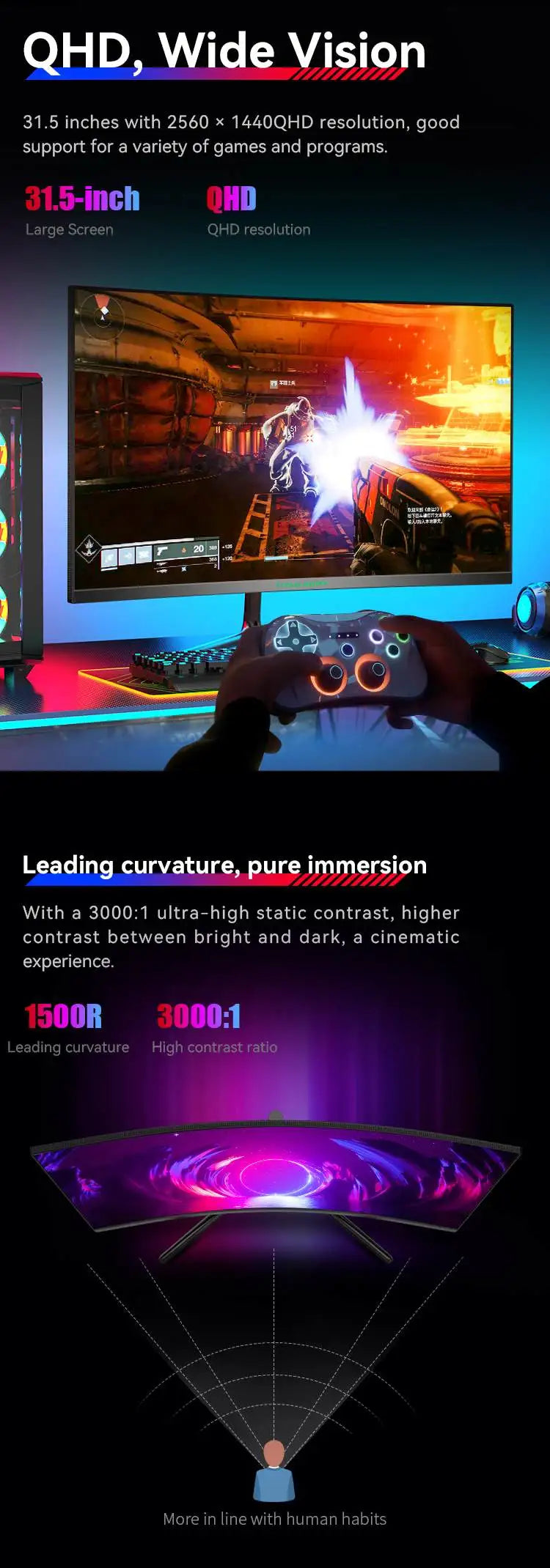 🎮 Massive 32" curved 1500R screen for full immersion
