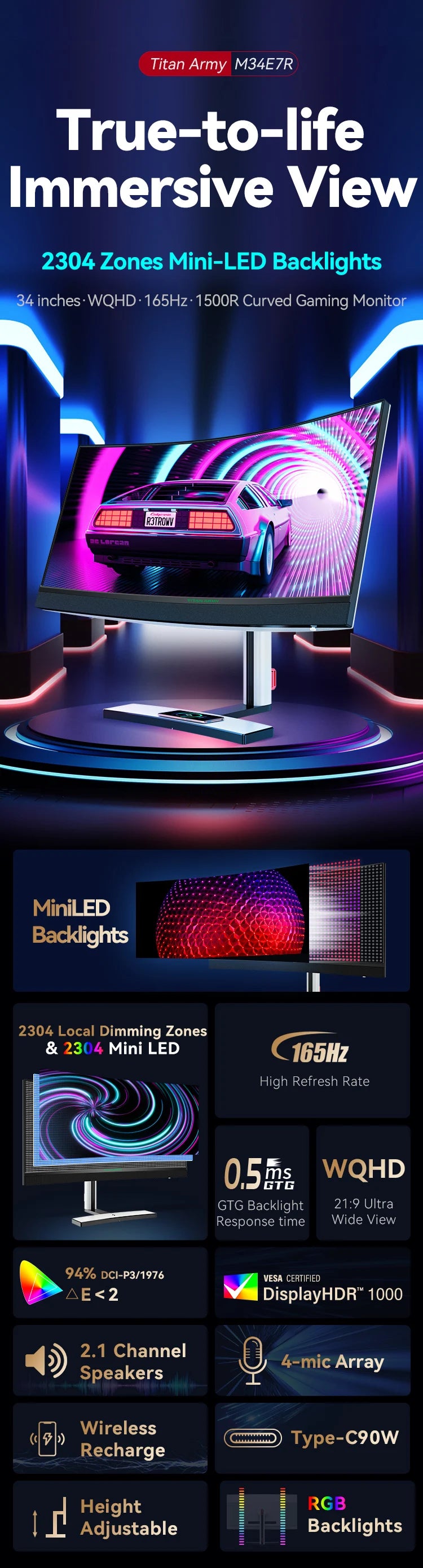 🐟 TITAN ARMY – 34” Mini LED 165Hz Ultrawide Gaming Monitor