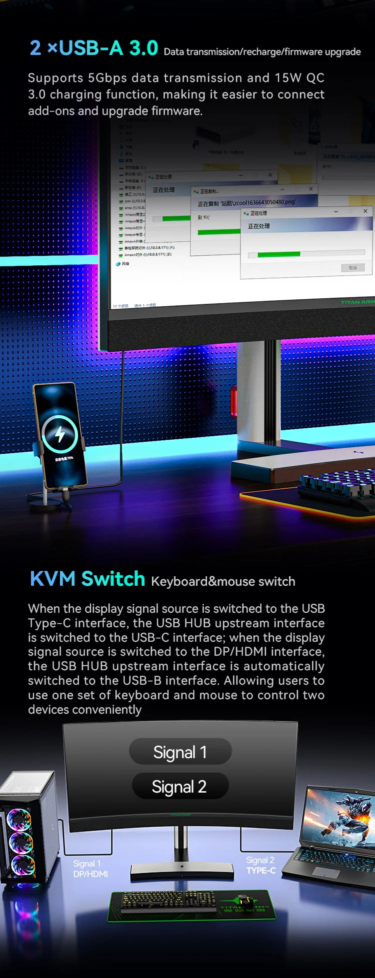 ⚡ USB-C 90W charging + KVM switch + wireless base – total desk control.