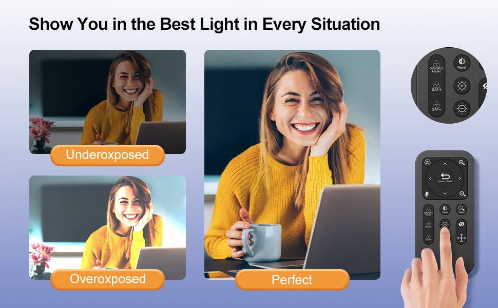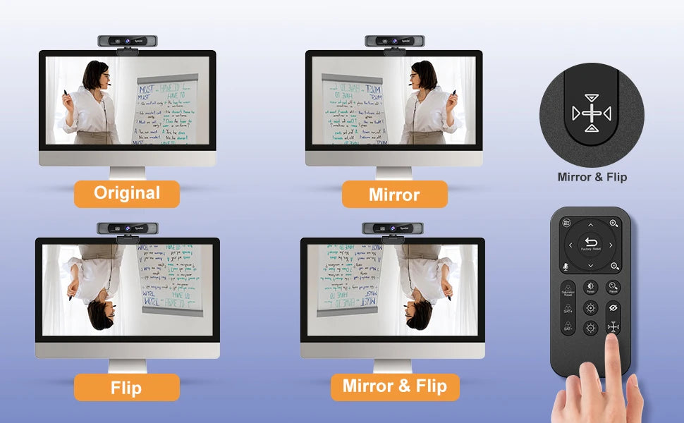 Adjust camera angles, mute the mic, or pause the video — all with the included remote control for ultimate convenience.